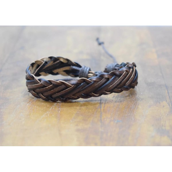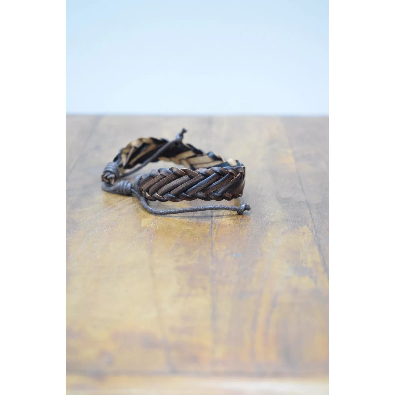Unbranded Bracelet Leather Brown Black Flat Woven Tie Bracelet