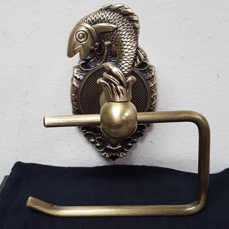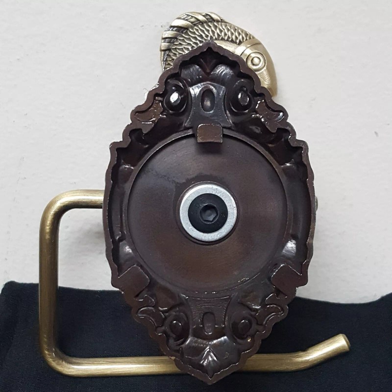 Unbranded Brass Figure KOI FISH Tissue Paper Roll Holder WallMount Attchd(w/Backp