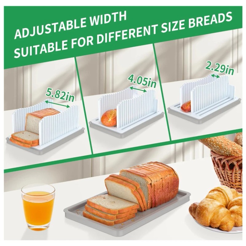 Bread Slicer for Homemade Bread, Foldable Bread Cutter with Crumb Tray, Adjustable Width Bread Slicing Guide for Loafs, Sandwiches, Bagels, and Cakes