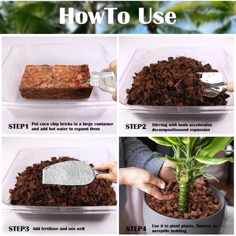 - Easy to use: Since our coconut shell shreds are compressed, you first need to put the coconut shell shreds into a large container, then add the right amount of water to fully expand it, and use various tools to accelerate its expansion. After it is fully expanded, you can use it to grow plants, or as a bedding for climbing pets.