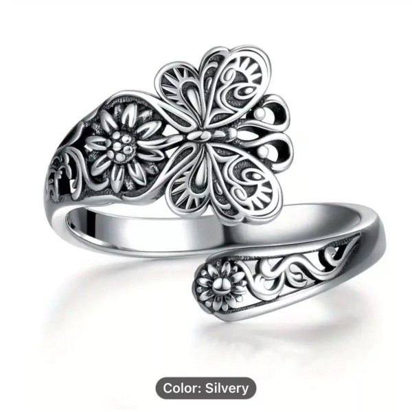 Butterfly Flower Adjustable Spoon Ring Silver