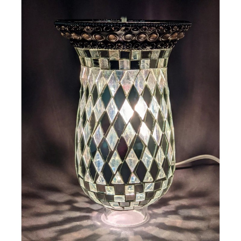 Unbranded Candle Holder Nickel Plated & Mirror Mosaic Glass Shade 5"Dia 10.5"High Set/2