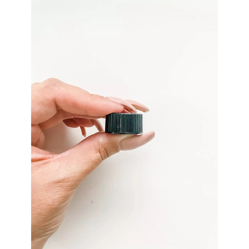 Cap with Liner Black 20/400. Ridged. Plastic.