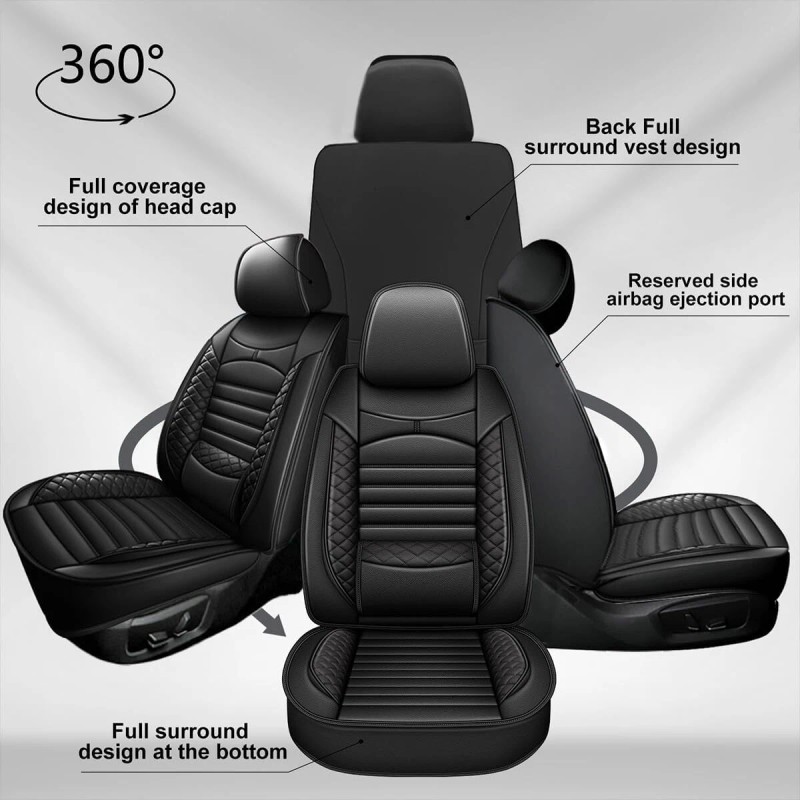 √ Material: Premium faux leather is durable, breathable, wear resistant, non-slip, comfortable and has good waterproof. The interior of the seat cover is filled with sponge, the appropriate thickness allows you to sit for a long time without getting tired.