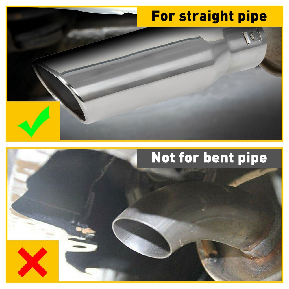 Warm Tips: 1.Please measure the outside diameter of your exhaust pipe before purchase, otherwise our product will not fit your car. This tips fit only 1.5-2.4 inch outlet tailpipe 2.Please check your original tailpipe's type. Straight tailpipe is for straight type, and curved tailpipe is for curved type.
