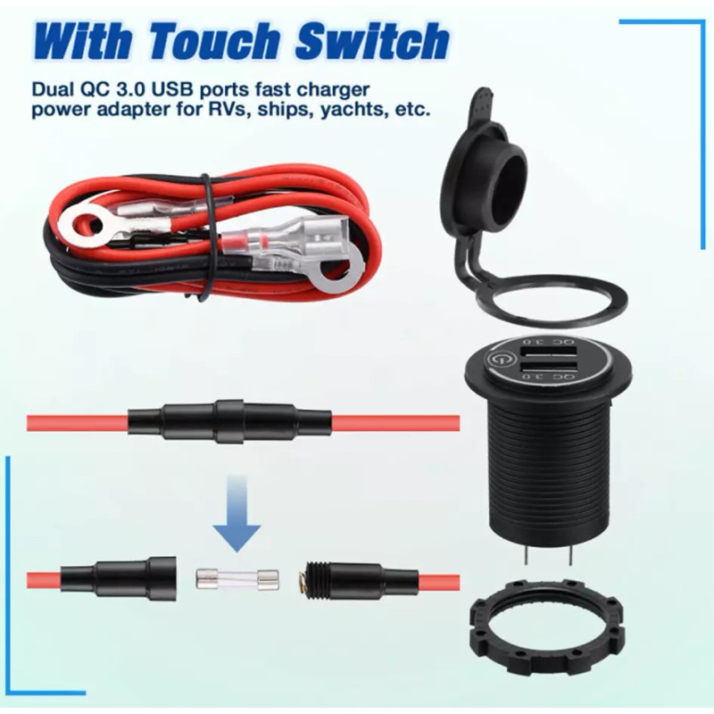 Unbranded Car RV Marine 12V USB Outlet 36W QC 3.0 USB Fast Charger Socket +Power Switch