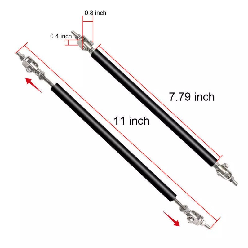 These front support rods are used to reinforce your front splitter or rear diffuser. It is universal fit for any car SUVs trucks, if you need to extend the strut bar, you can extend its length from 8" to 11".