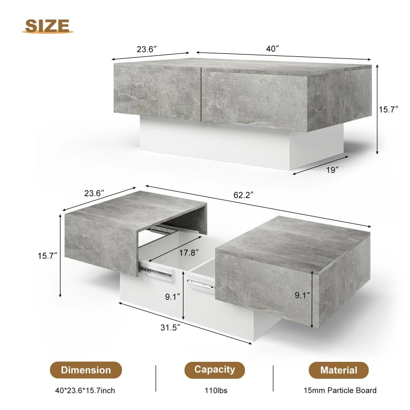 · 【Durable Construction】Crafted from premium 15mm particle board with a waterproof surface, our coffee table is built to last. With exquisite workmanship and selected materials, it offers long-lasting durability and timeless elegance.
