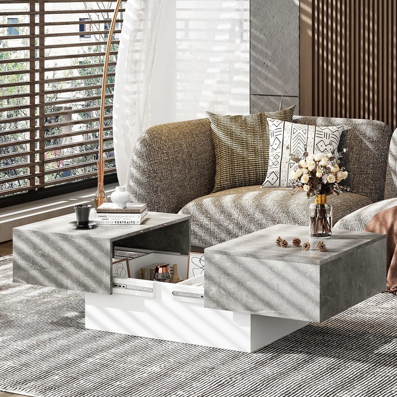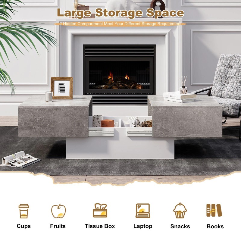 · 【Innovative Extendable Design】Experience convenience like never before with our innovative sliding top mechanism. Easily extend the table to reveal a hidden compartment, ideal for storing laptops, blankets, books, and more. Effortlessly manage and organize your living space with this practical yet stylish coffee table.
