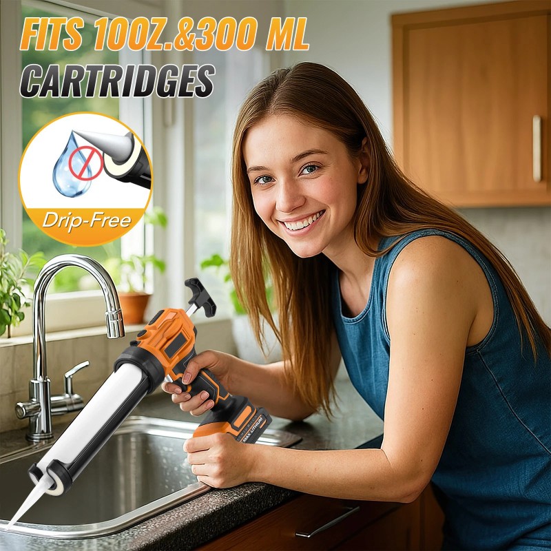 - ๐ฆ๐ฎ๐๐ฒ๐ ๐ฌ๐ผ๐๐ฟ ๐๐ฎ๐ป๐ฑ๐: Effortlessly tackle your projects with the powerful motor, eliminating the need need to grind calluses out of your hands. Battery powered caulking gun with a robust thrust of 300kg. It is suitable for all your caulking, filling, and sealing needs. Get the job done quickly and effortlessly