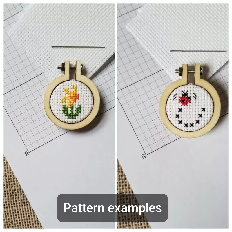Example pieces pictured are in a 1.5" hoop with 1" center.