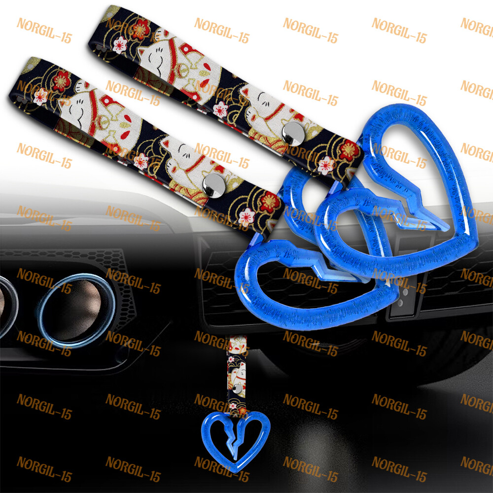 Unbranded Crystal Broken Heart TSURIKAWA Blue Ring Train Bus Handle Strap Fabric BKC X2