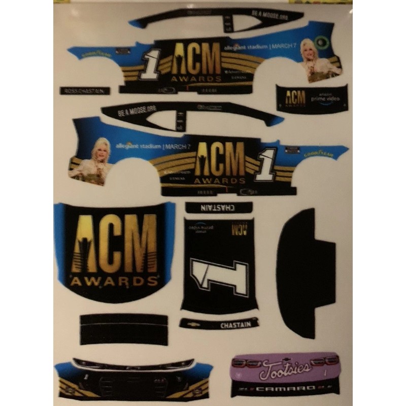 Custom 2022 Ross Chastain #1 ACM Awards 1/64 Scale NASCAR Peel & Stick Decals. These are not precut.