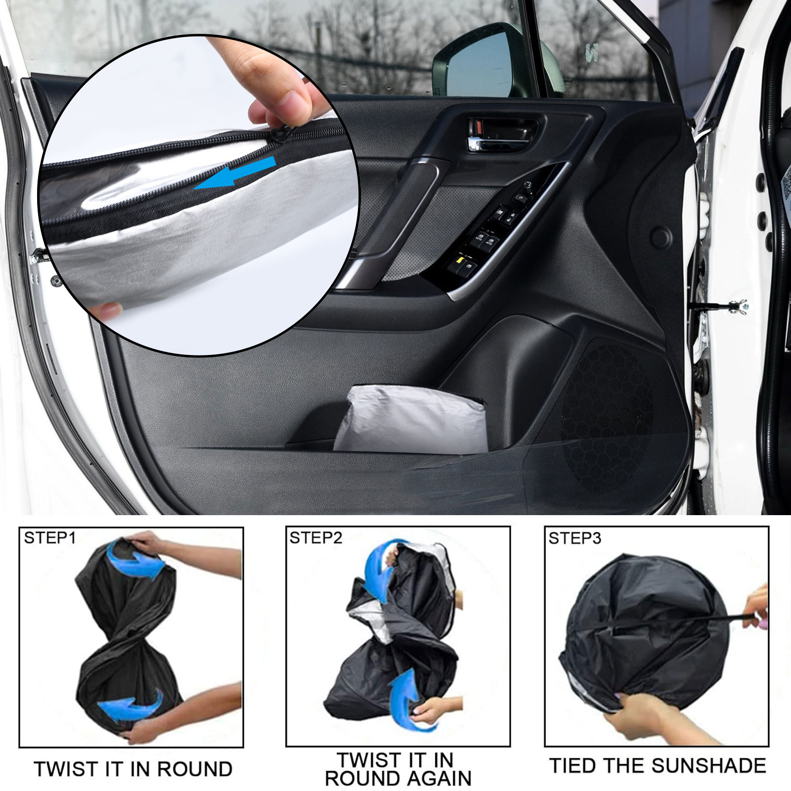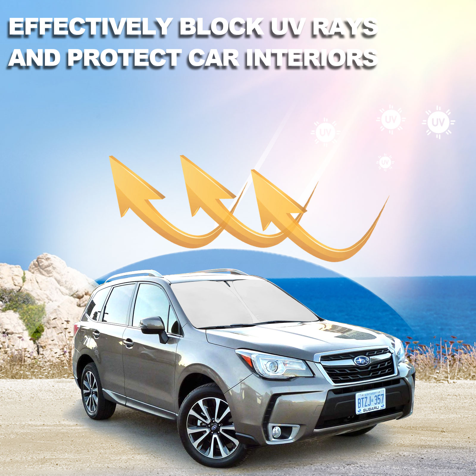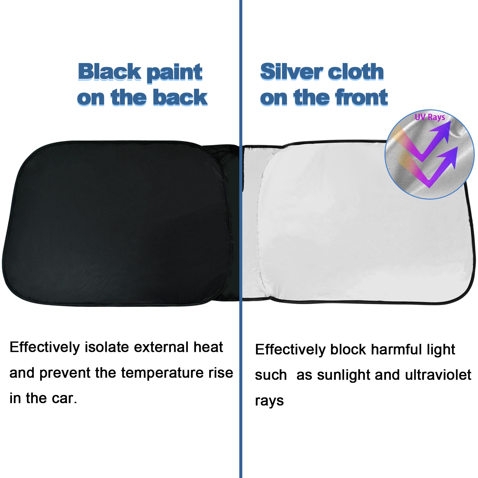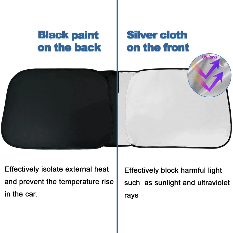 Double Thickness Material: Made of 210T Reflective Polyester, Sun Blocker is consist of both double reflective layers and double thermal insulating layers which can make shading and insulation more effective,Keeps your vehicle cool and protects against damage caused by hot sunlight.