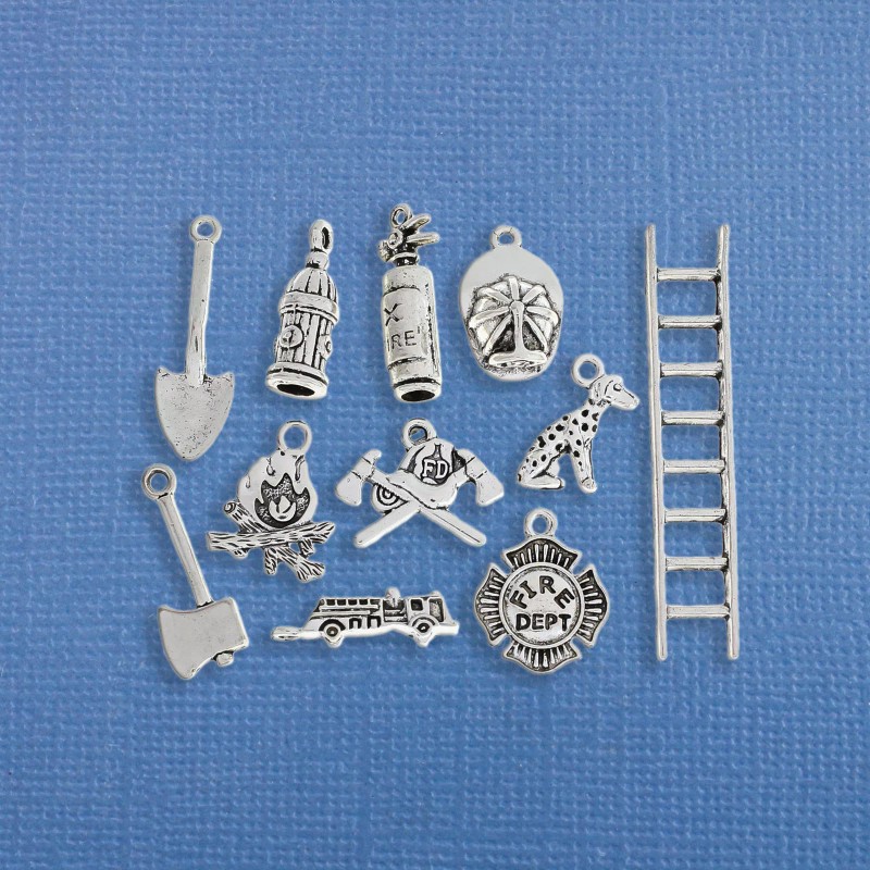Unbranded Deluxe Fireman Charm Collection Antique Silver Tone 11 Charms - COL257