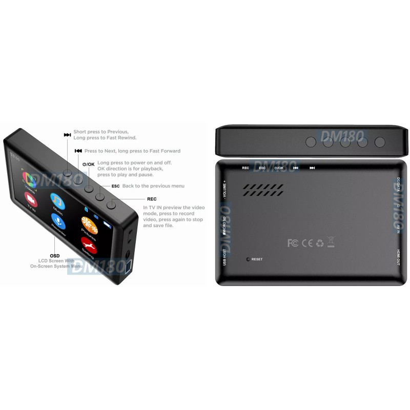 It is also a portable video audio player for playback of recorded MP4 video files and MP3 audio files or other video audio files stored in a TF card or flash drive.
