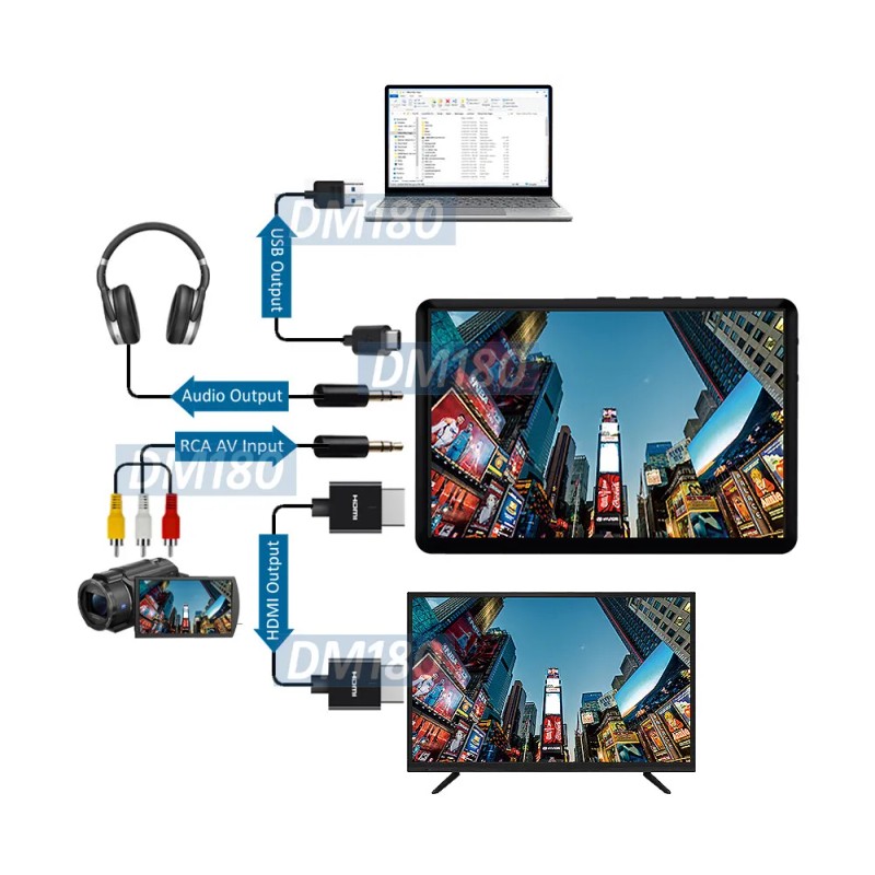 - RCA Video/Audio input with HDMI output and 3.5mm audio output for headphone, stereo speaker, audio receiver etc.