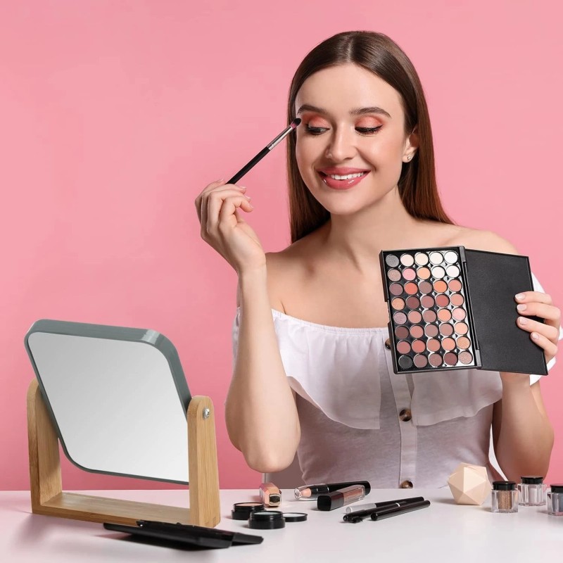 - 【Portable & Versatile】This cosmetic mirror can be placed on every desktop or table, takes up small space on bathroom countertops, vanities, dressing tables, makeup tables or bedroom dressers. simple and lightweight design, can be used as a handheld mirror for morning makeup or a shaving mirror, etc