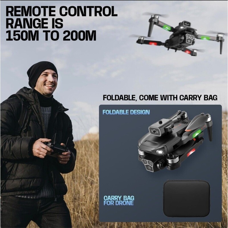 Color BLACK , Video Capture Resolution 4K Connectivity Technology Wi-Fi Battery Capacity 2500 Milliamp Hours Control Type Remote Control Media Type SD Wireless Communication Technology Wi-Fi Are Batteries Included Yes Three 4K HD FPV Camera Aerial Drone: This drone is equipped with three 4K HD cameras, allowing you to capture stunning high-definition pictures and videos from different angles. Remote-controlled 90° rotatable structure can provide more perspectives. And the bottom is also equipped with an 𝐨𝐩𝐭𝐢𝐜𝐚𝐥𝐟𝐥𝐨𝐰 camera to maintain stability. 4 Advanced Brushless Motors: The brushless motor arms provide strong power to achieve stable and fast flight of the drone, It holds a position quite stable even in wind. This brushless motors are less noisy, easier to control , more energy-efficient and last longer compared to brushed motors. Multiple Flight Technology:Our drone has many commonly used functions, which include 3 speeds, 𝐨𝐩𝐭𝐢𝐜𝐚𝐥𝐟𝐥𝐨𝐰 positioning, 360° Flip, Headless Mode, one button takeoff/landing, Gesture control ,Lens switching, intelligent following, circular flight, intelligent obstacle avoidance, 𝐨𝐩𝐭𝐢𝐜𝐚𝐥𝐟𝐥𝐨𝐰 hovering, brushless wind resistance, 50x zoom, trajectory flying, 360 ° special effects flipping. Even if you are a beginner, you can operate it easly. Mini Size & Long Battery Life: Ultra long 2 batteries life 3.7V 2500mAh Li battery, which can last about 30 minutes. The size and weight of the product are light, and the body weight is 150g, which can circumvent the 𝐧𝐚𝐭𝐢𝐨𝐧𝐚𝐥 aviation control. Foldable and Portable: The drone features foldable arms, making it compact and easy to carry. Whether you're traveling or going on an adventure, you can easily bring this drone. The quadcopter fuselage is made of high-strength and engineering plastics, providing durability and resistance.
