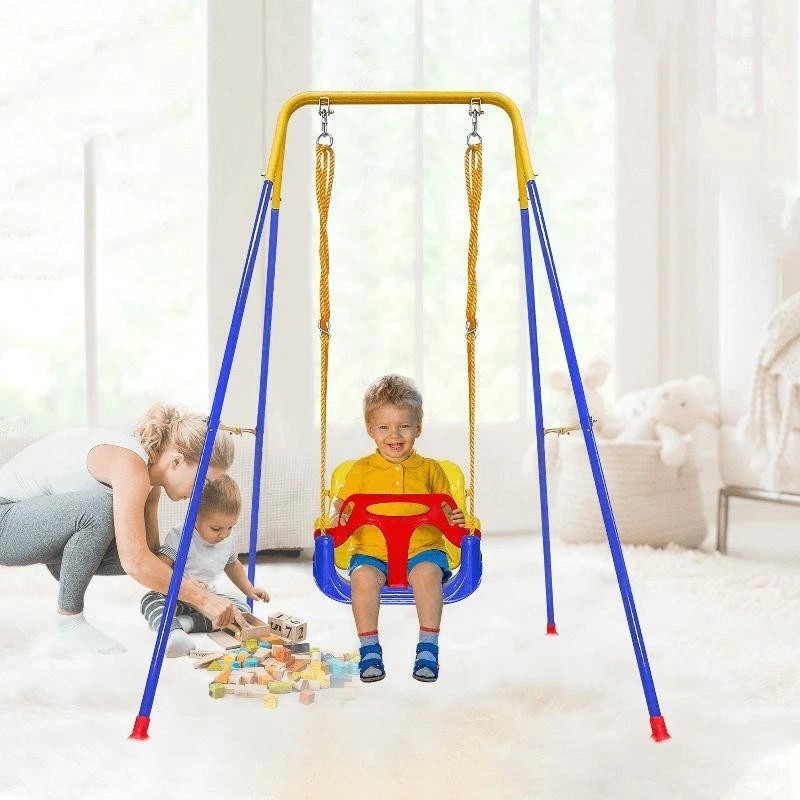 Unbranded Durable 3-In-1 Toddler Swing Set Indoor Outdoor Safe Play W/ Metal Stand Folds