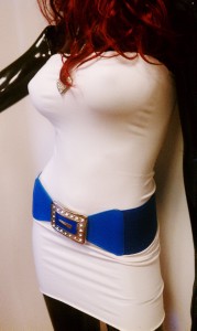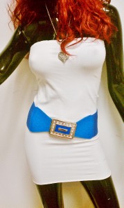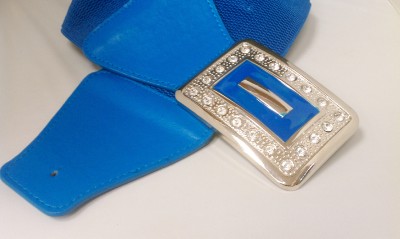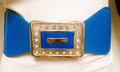 Unbranded Elegant High & Low Blue Waist Elastic Belt Broad Design Stones Buckle size s m l