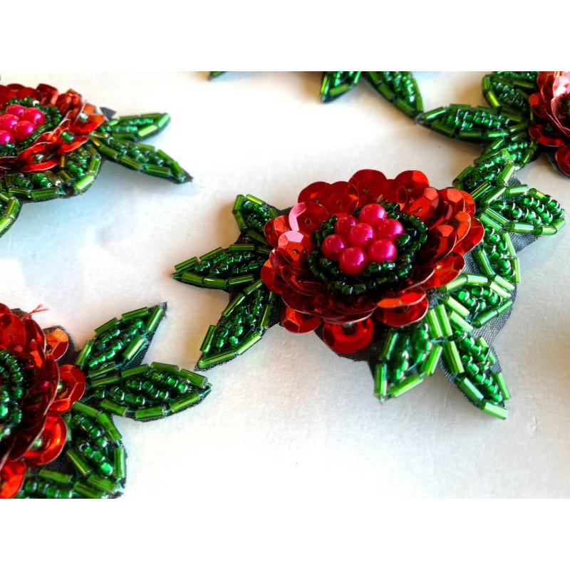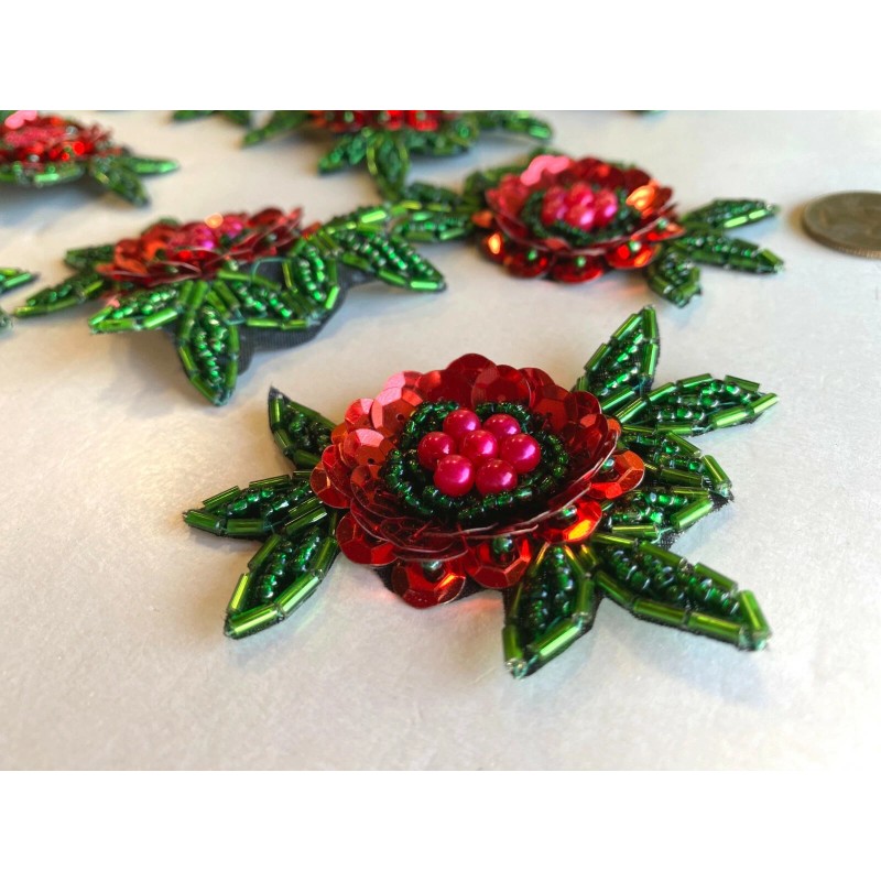 Embroidered Appliques Hollyberry Sequin Beaded Sewing Clothing 10pc |