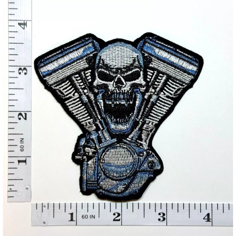 Unbranded Embroidered Patch - Motorcycle Engine - Skull - Biker - NEW - Iron-on