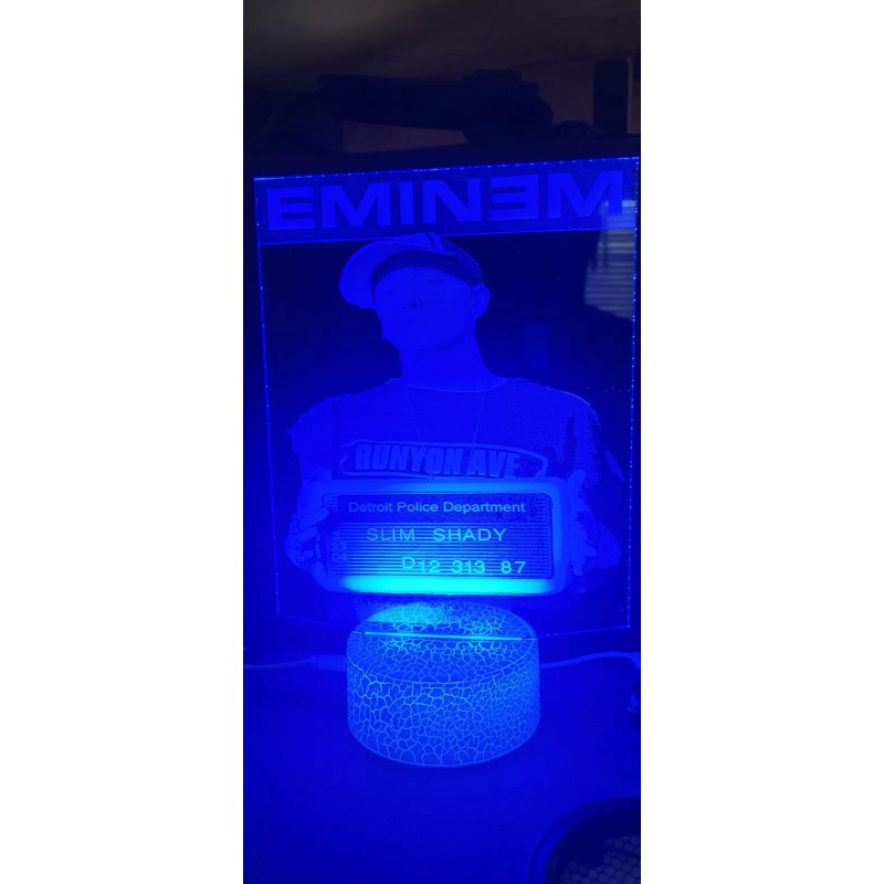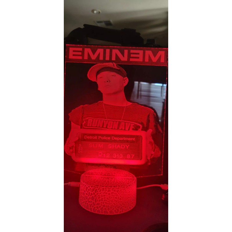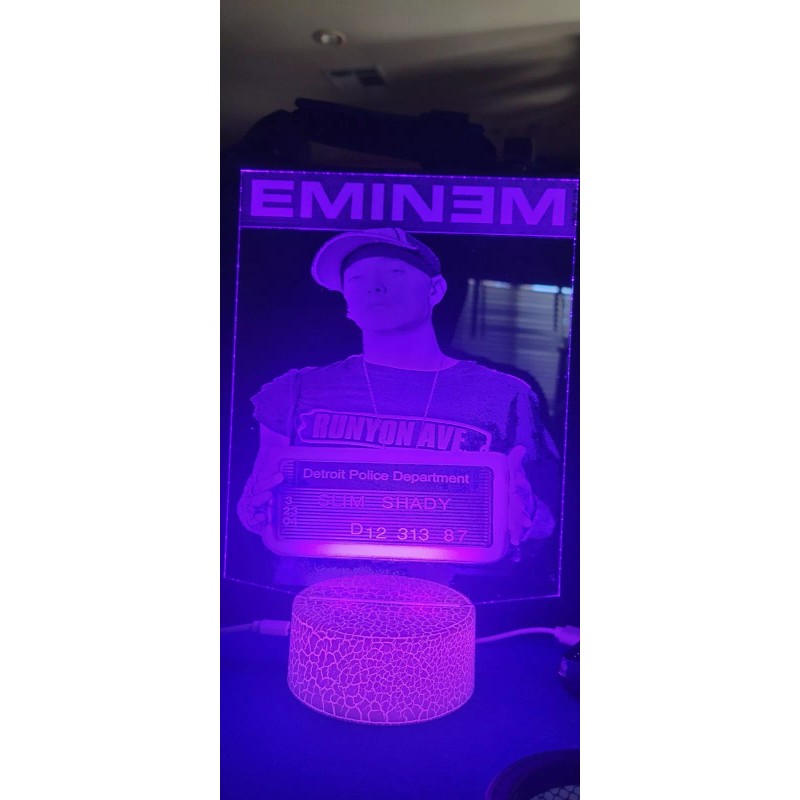 Eminem Custom LED Lamp.Custom made lamp changes colors and comes with usb cord and remote control approximately 8-10 inches check out my other listings and my Instagram engraverbiz2021 ill do any image tou can image . I do wood too .