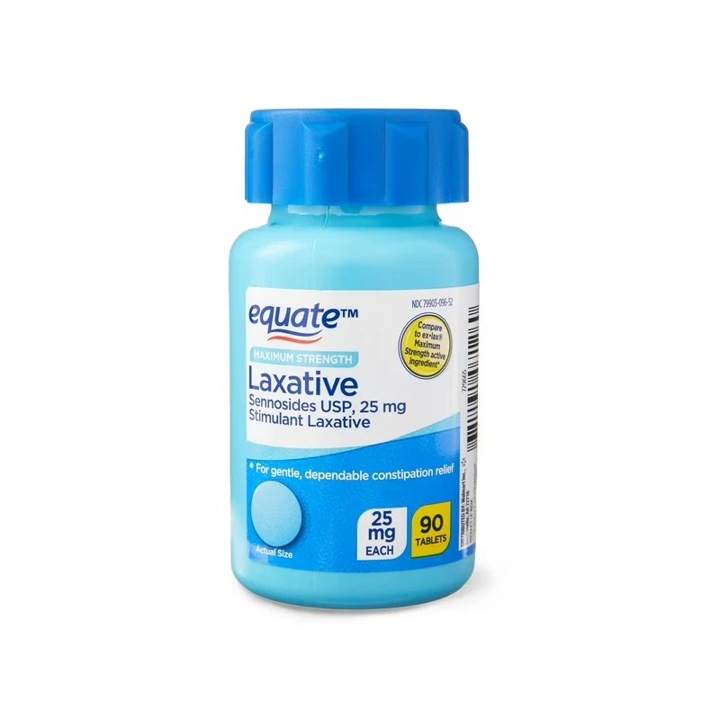 Get fast, temporary relief from pain and discomfort with Equate Maximum-Strength Laxative Sennosides USP 25mg Tablets. Designed to help assist your body with occasional constipation, each tablet contains 25mg of the active ingredient, sennosides USP. Equate laxative pills immediately go to work to break down blockage in the digestive system, allowing you to produce a bowel movement generally within 6 to 12 hours. They perform best when you take them right before bedtime, allowing you to wake up and experience relief. Equate Maximum-Strength Laxative Sennosides USP 25mg Tablets are dependable and gentle on the body. They come in a 90-count bottle for your convenience. This product is intended for use by adults and children 6 years of age and older.