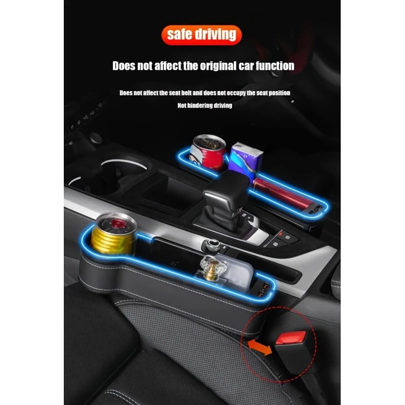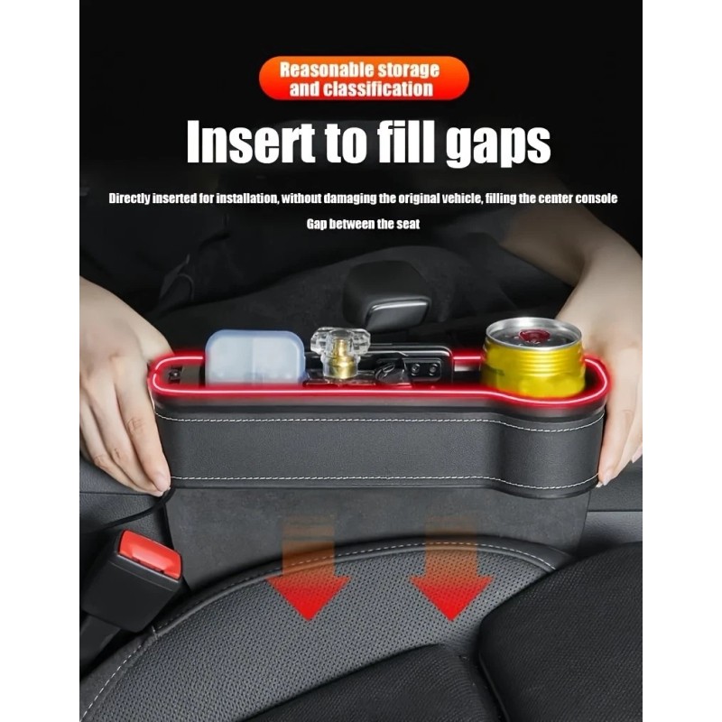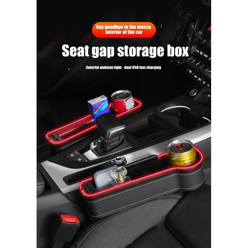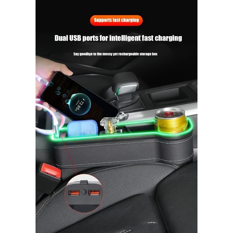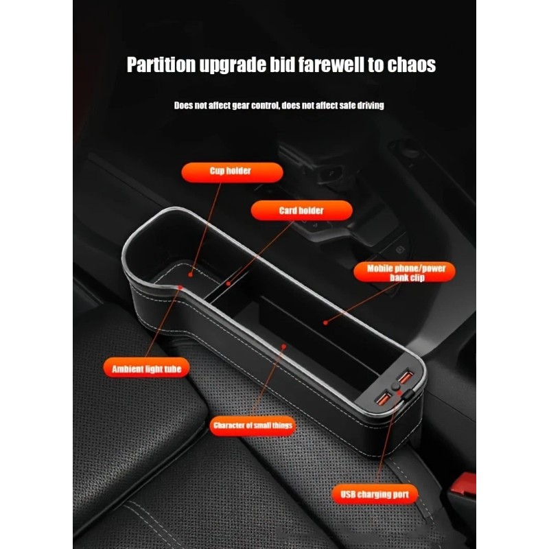 Multi-Function Car Seat Gap Storage Box-LED Light,Dual USB Charger,Phone Holder