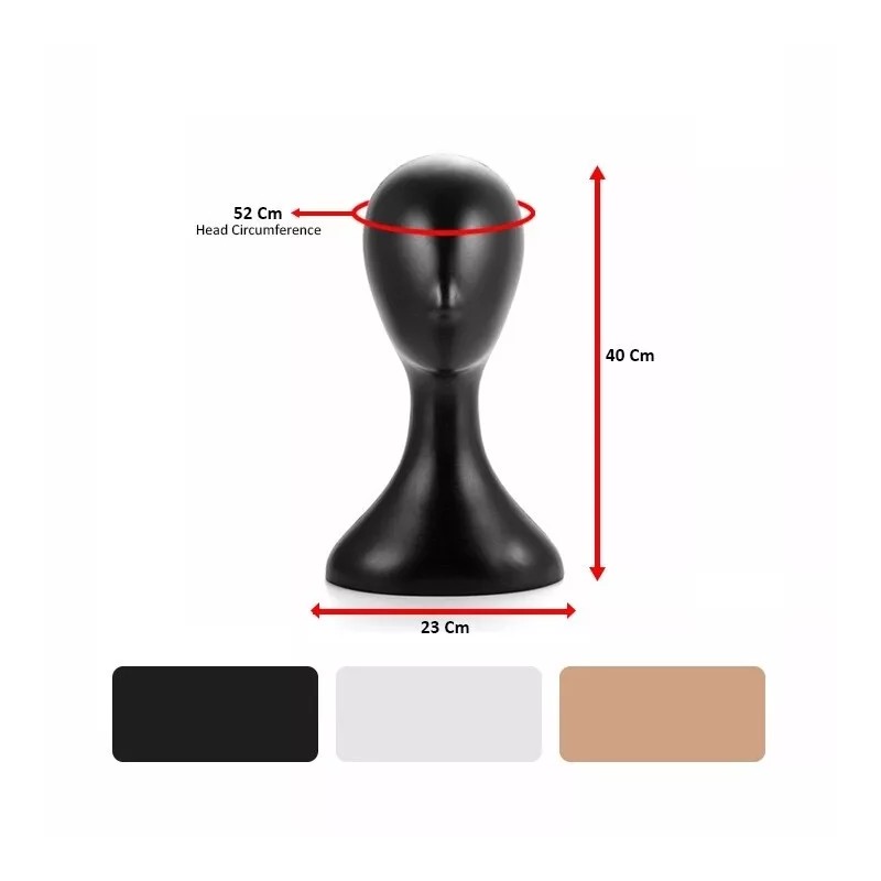 This head mannequin boasts a sleek, polished surface with enduring color, ensuring easy maintenance. Its versatility allows for the display of wig hair as well as glasses and sunglasses, making it suitable for a variety of applications. Crafted from durable plastic and PE material, this model is built to last. Standing at 40cm tall with a shoulder width of 24cm and a head circumference of 51cm, it also features a bottom measuring 22cm in length and 14cm in width. Ideal for both professional and personal use, it facilitates the creation of different hairstyles, making it perfect for hair salons and wig displays.