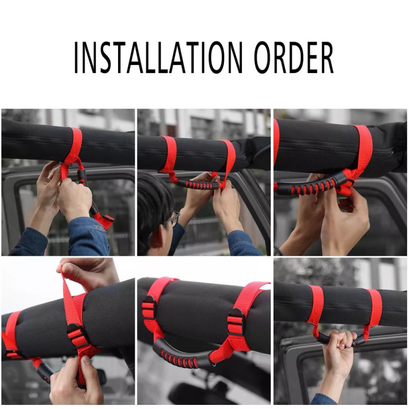 Unbranded Fits Jeep Wrangler CJ YJ TJ JK Red Thin Unlimited Roll Bar Grab Handles 4pcs