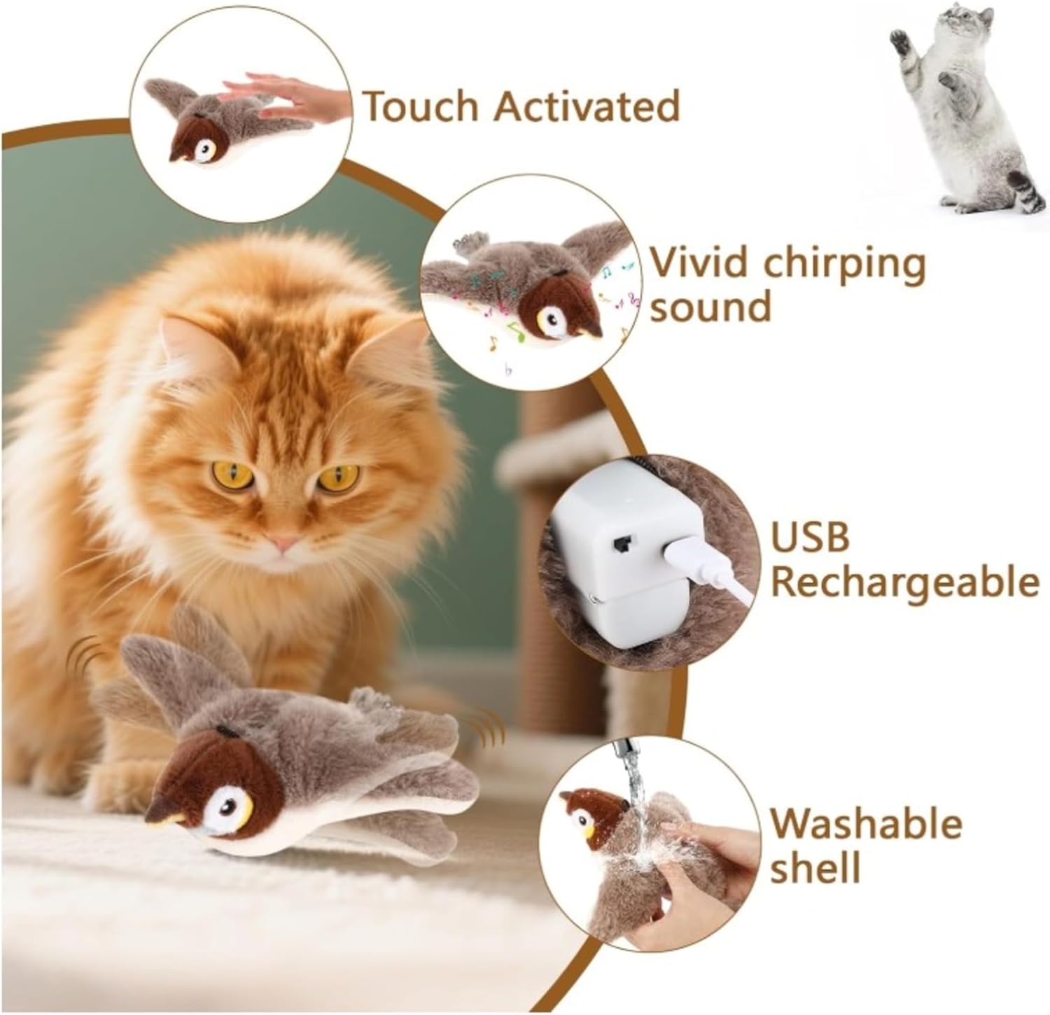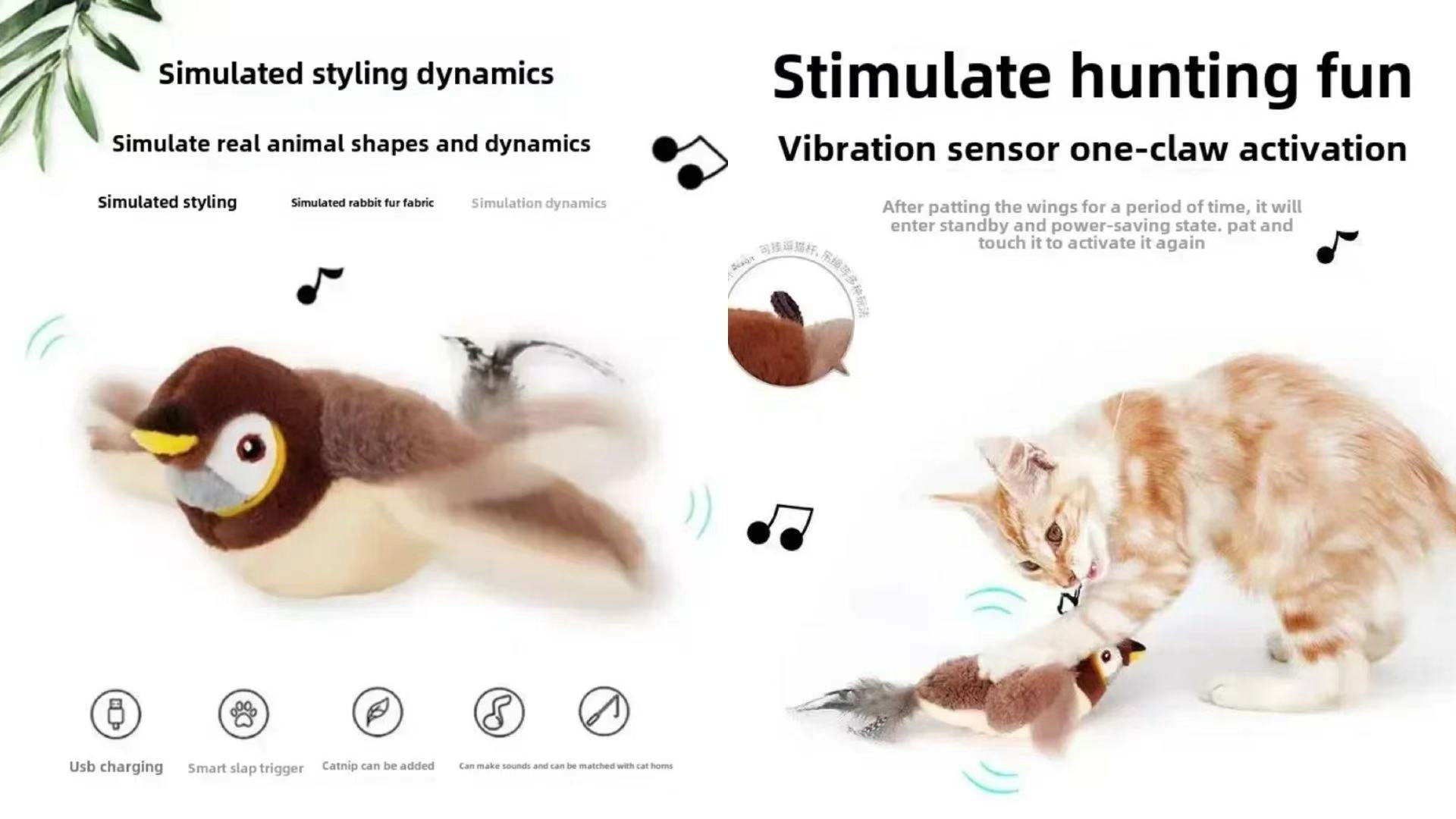 Experience chirping flapping bird cat toy action with realistic wing flapping and authentic bird chirping melodies to stimulate your cat’s natural hunting instincts. Perfect for flappy bird cat toy flying enthusiasts.