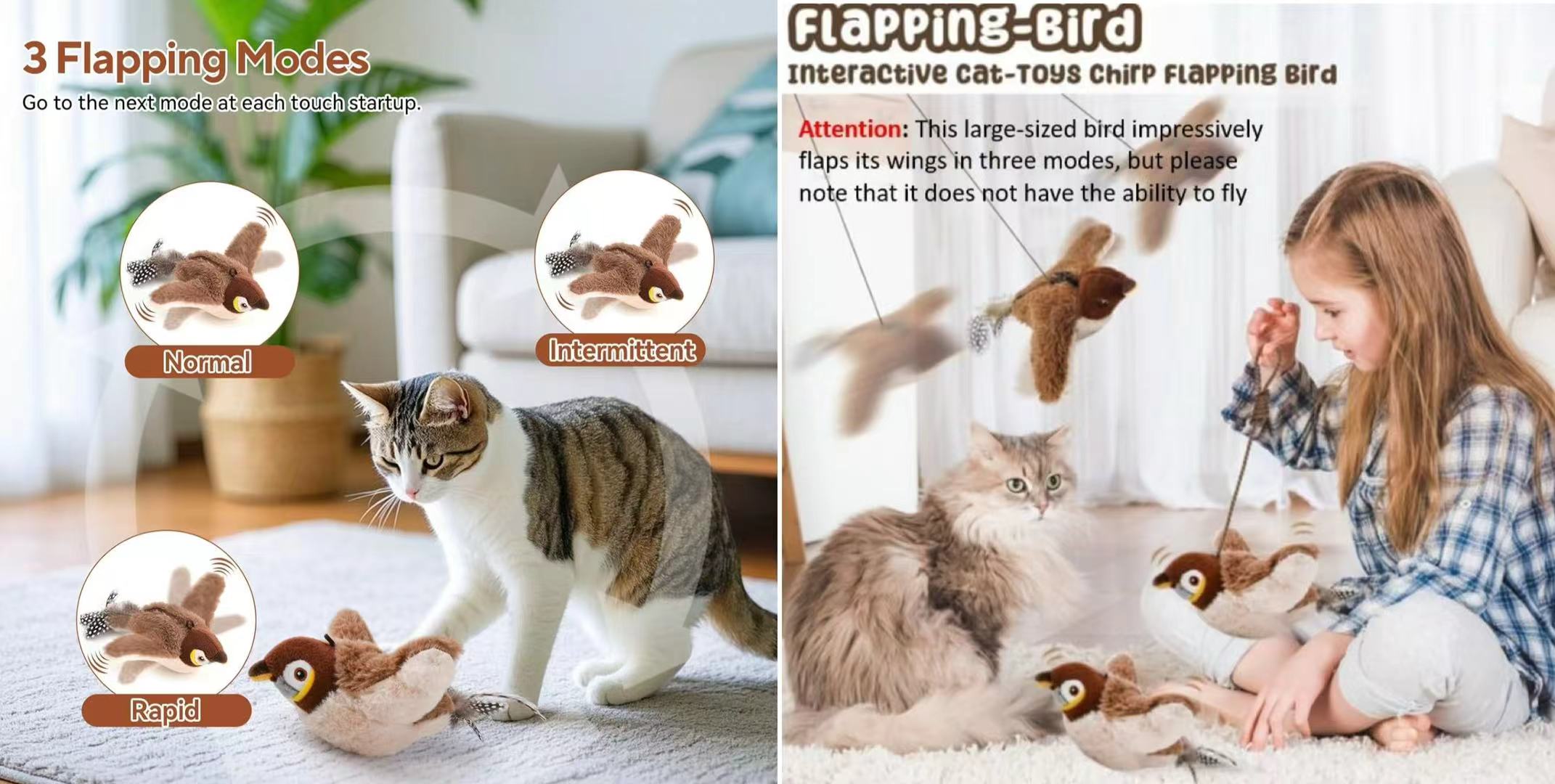 Paw-Activated Bird Sounds in Flappy Bird Cat Toy