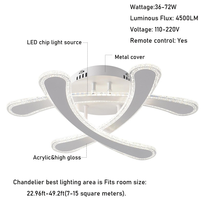 【7-15m²】The ceiling lamp diameter is 19.68 inches/50CM, power is 36-72 watts, chandelier best lighting area is 7-15 square meters.