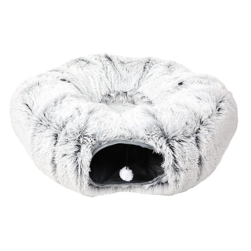 Dual Function: Cat tunnel bed features a circular tunnel design that caters to cats instincts to burrow and play. The washable circle cushion allows cat to rest comfortably on it, donut tunnel for another cat to play,enabling two cats to use the bed simultaneously without disturbing each other. This innovative design provides endless entertainment for your cats.