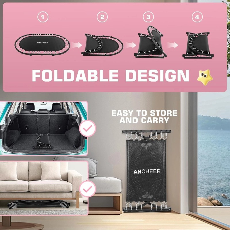 Unbranded Foldable Trampoline, Mini Rebounder Trampoline with Adjustable Hand...