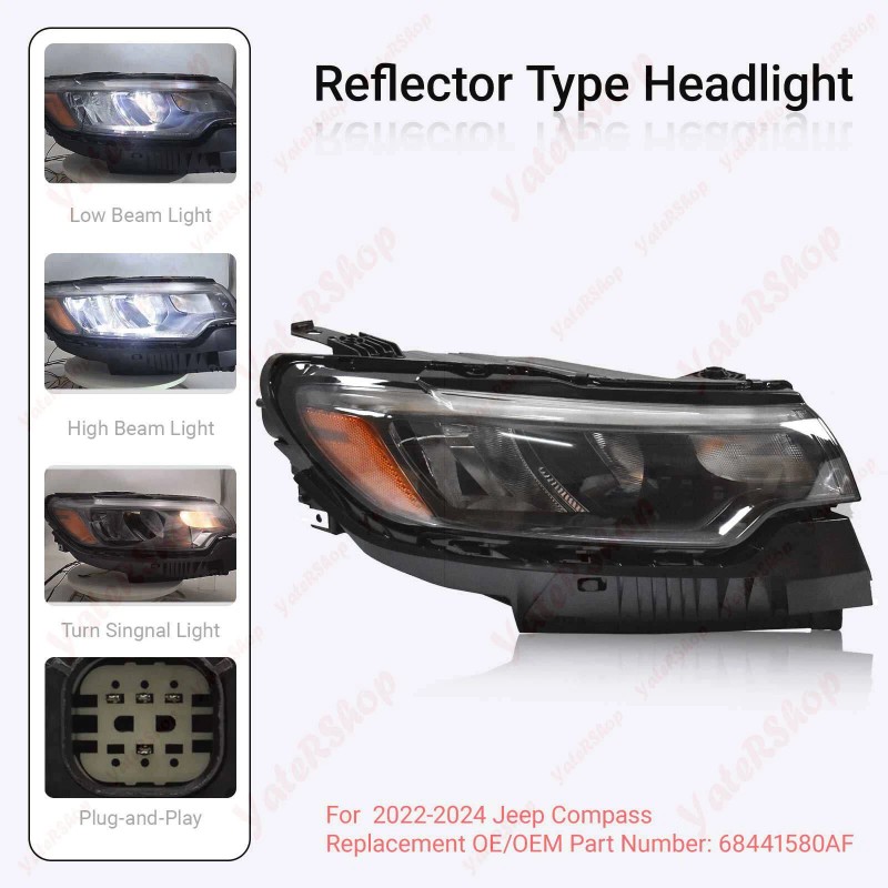 Unbranded For 2022 2023 2024 Jeep Compass w/o LED DRL LED Reflector Headlight - Passenger