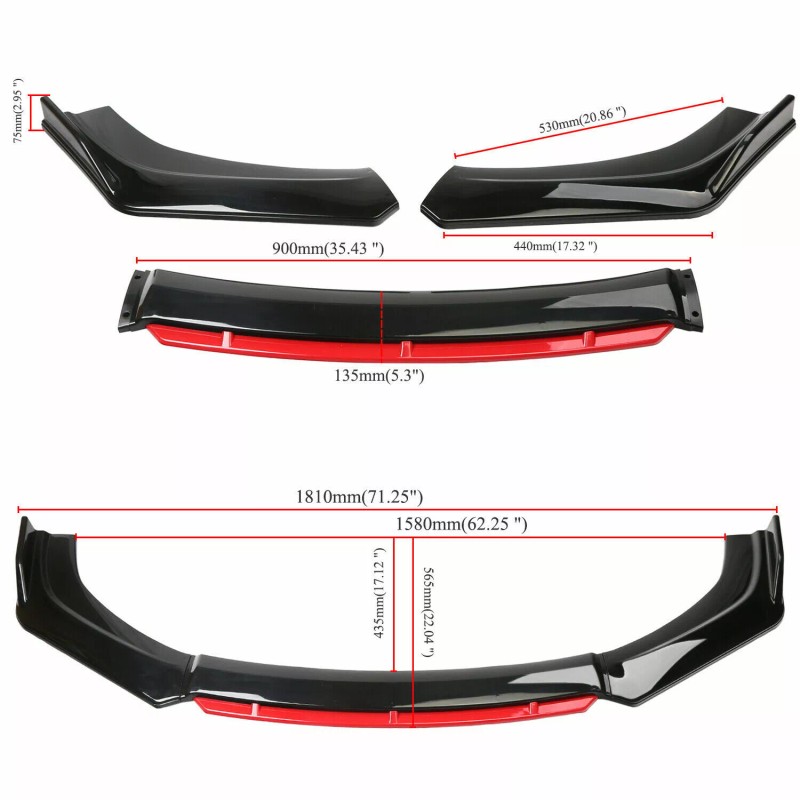 - Package Included 1: 4pcs Front Bumper Lip Body Kit Spoiler 70"