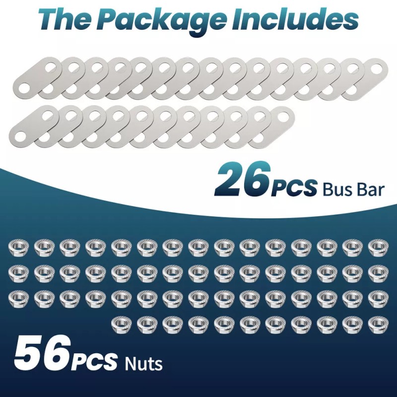 - Package Includes:: 26PCS Battery Bus Bars and 56PCS Nuts
