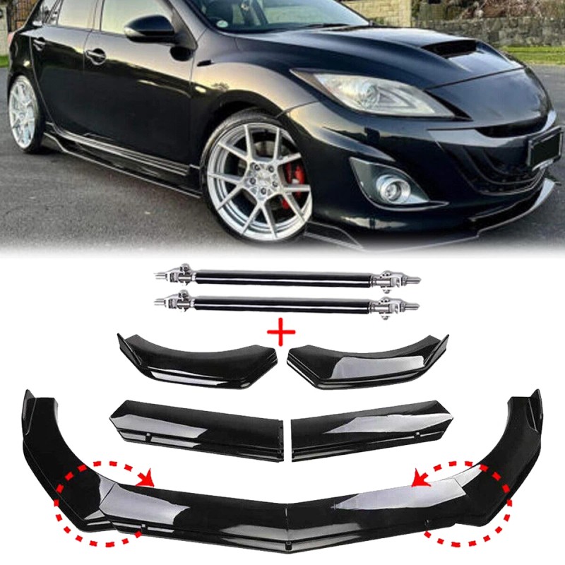 Unbranded Front Bumper Lip Splitter Spoiler Strut Rod Bod Kit For 03-08 Mazda 6 Sedan