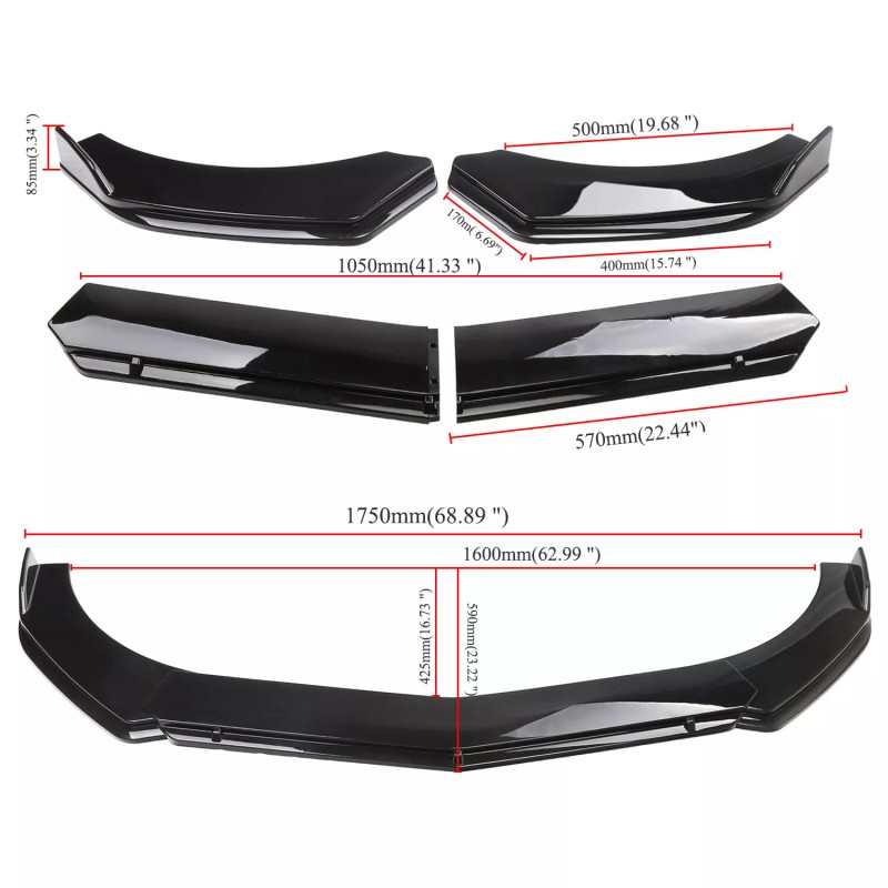 - Contents of the package: 4 pcs Front Bumper Lip Body Kit Spoiler