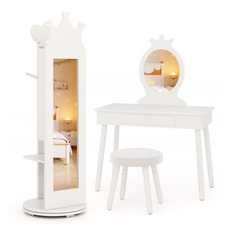 Unbranded Full Length Mirror Kids Jewelry Cabinet Freestanding Toddler Armoire Swivel Base