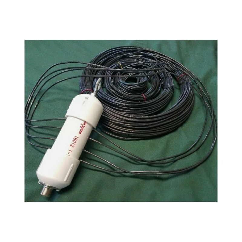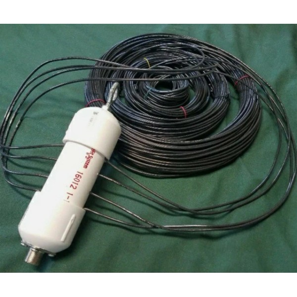 Half-wave Fan Dipole antenna for 20, 15, 6, and 2 meters with internal 1:1 choke balun. The 20 meter legs measure approximately 16 feet, 8.57 inches (16' 8.57") on each side. The 15 meter legs measure approximately 11 feet, 1.71 inches (11' 1.71") on each side. The 6 meter legs measure approximately 4 feet, 8.16 inches (4' 8.16") on each side. The 2 meter legs measure approximately 1 feet, 8.5 inches (1' 8.5") on each side. Elements will be arranged from top to bottom as large to small (20, 15, 6, then 2.) Made from high quality 18 AWG stranded insulated wire. Run your feed line with a PL-259 up and connect in to the SO-239 on the bottom. Color of wire insulation varies.