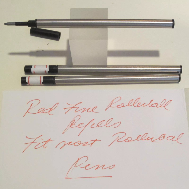 3 METAL ROLLERBALL REFILLS- RED FINE