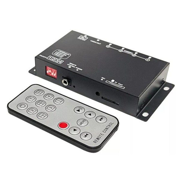 Users can put a micro SD or TF card into this quad video DVR for saving the AVI recording video files into the memory card for playback on TV or computer later.