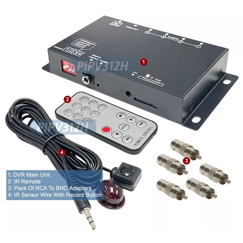 4-Channel Multi-Viewing Mini DVR With IR Remote For 1080p TVI CVI AHD And Analog Video Cameras