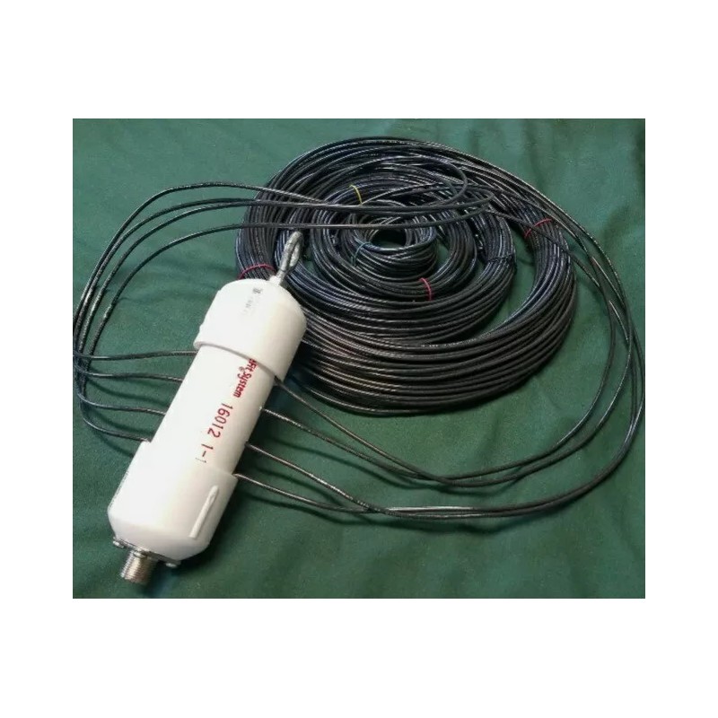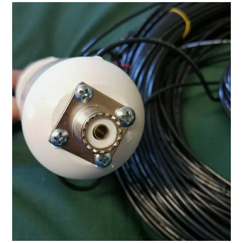 Half-wave Fan Dipole antenna for 40, 20, 17, and 15 meters. The 40 meter legs measure approximately 33 feet, 5.14 inches (33' 5.14") on each side. The 20 meter legs measure approximately 16 feet, 8.57 inches (16' 8.57") on each side. The 17 meter legs measure approximately 12 feet, 11.41 inches (12' 11.41") on each side. The 15 meter legs measure approximately 11 feet, 1.71 inches (11' 1.71") on each side. Elements will be arranged from top to bottom as large to small (40, 20, 17, then 15.) Made from high quality 18 AWG stranded insulated wire. Run your feed line with a PL-259 up and connect in to the SO-239 on the bottom. Color of wire insulation varies.