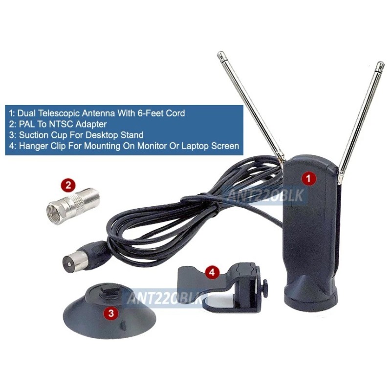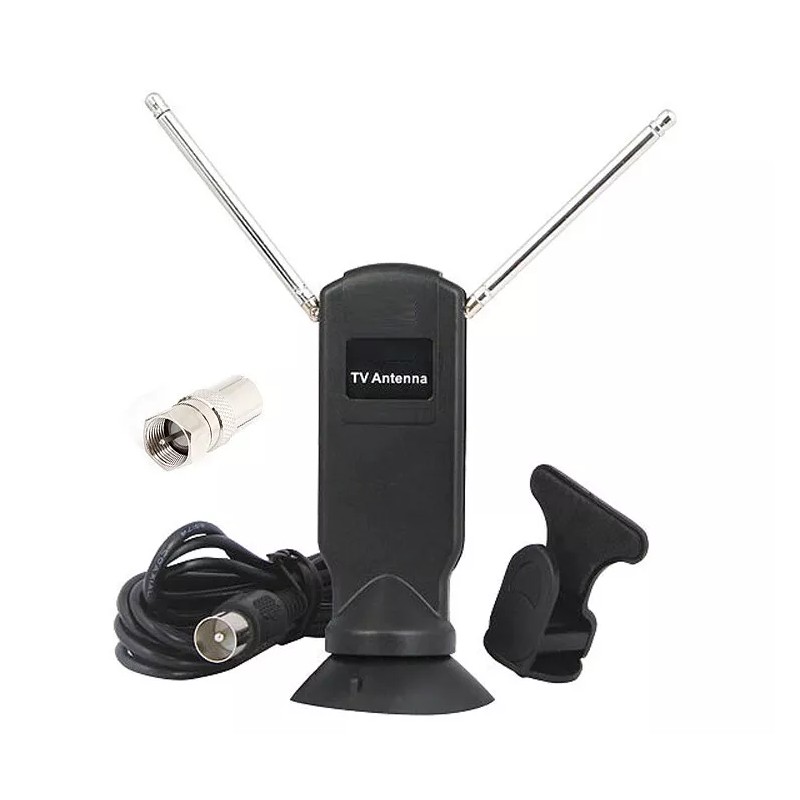 This is a mini TV antenna with 2 telescopic antenna rods. Designed for digital and analog TV reception.