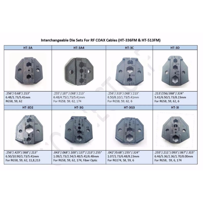 Crimping Cable Size: RG174, 179, Belden 8218, Fiber Optic